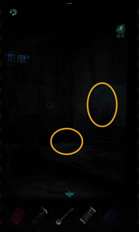 进入右侧房间→点击床查看人偶获得【打湿的布】,点击人偶下方液体做游戏获得【齿轮】,返回棺材房用尖锐的碎片割断村长身上的红绳获得【圆盘】,进入左侧的房间用打湿的布扑灭火把,再用尖锐的碎片扣出【闪光的子弹】