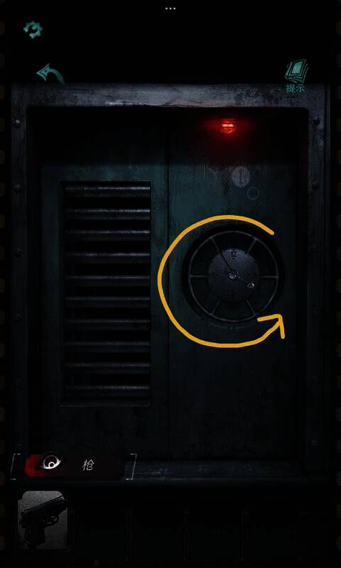 将齿轮和指针安装在右侧墙上的钟里,根据文件袋里的日期转动指针获得【旋转的轮盘】,将旋转的轮盘安在大门上离开密室。