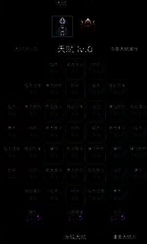 7、天赋,天赋下有天赋和修炼两个选项,天赋这需要好好规划,比如想点第二排中间的护甲点满需要第一排攻击、生命与护甲一共点了15点,其他位置也有限制,需要自己规划,洗点无消耗