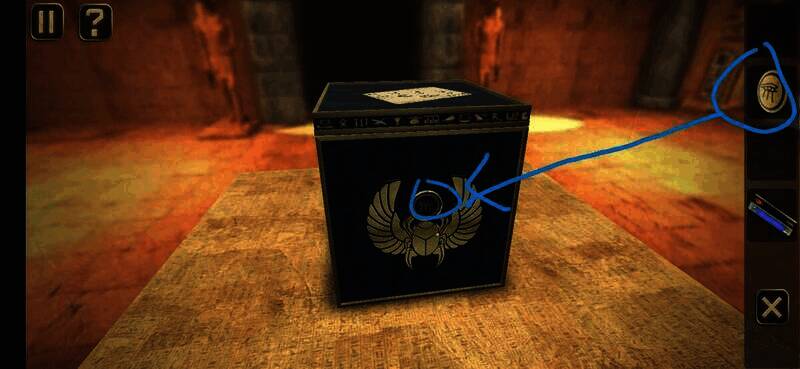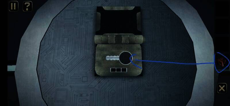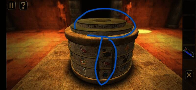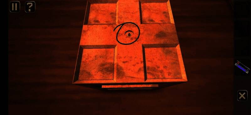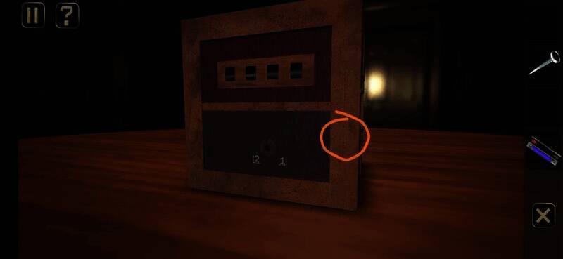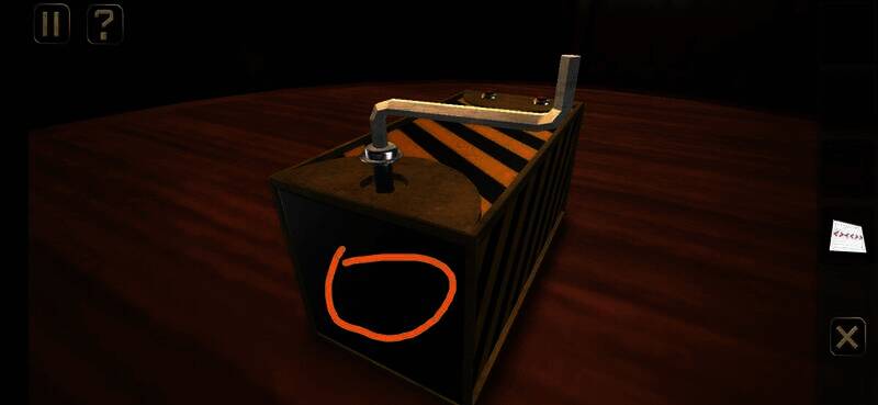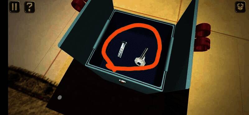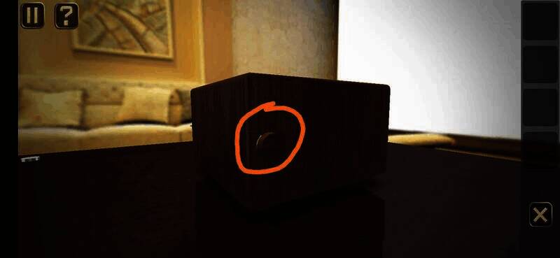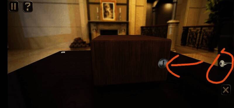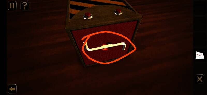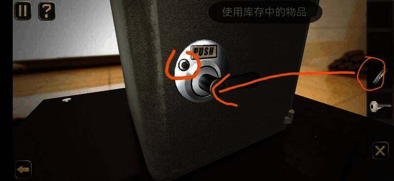用钥匙插入孔中转动,切换到锁孔背面,点击图上位置,拉动弹出的插鞘打开盒子,拾取盒中纸片进入下一关