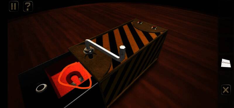 使用六角扳手转动锁孔,长按黑块部分,弹出盒子点击得到磁铁进入下一关