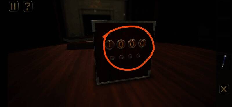 点击盒子周围同色按钮,把它们全部点亮。根据提示得到密码0463,输入顶部按键,得到电池,进入下一关
