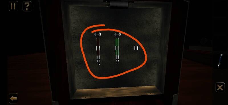 点击红色按钮开关调整为push,用图中所示物品插入,再次调整按钮为pull,拉开箱门,点击得到黄色盒子进入下一关