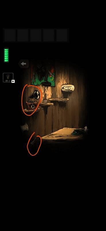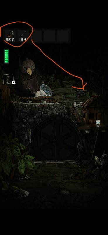 点击得到香蕉拿去喂动物,得到梯子,把梯子架到二楼进入房间,点击得到唱片机和摇杆