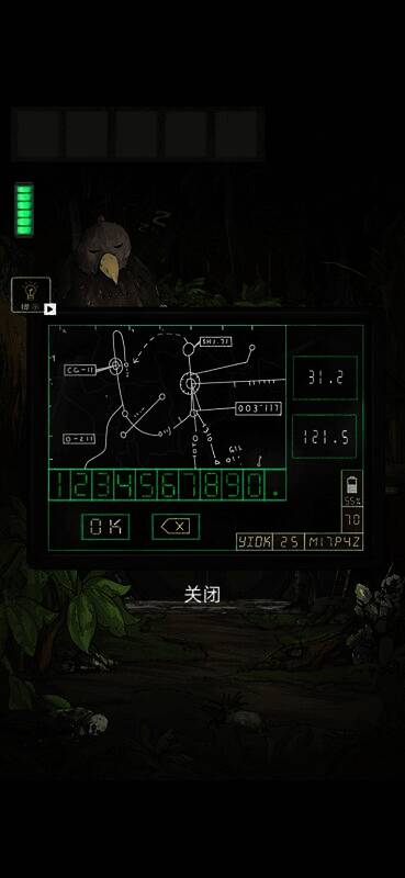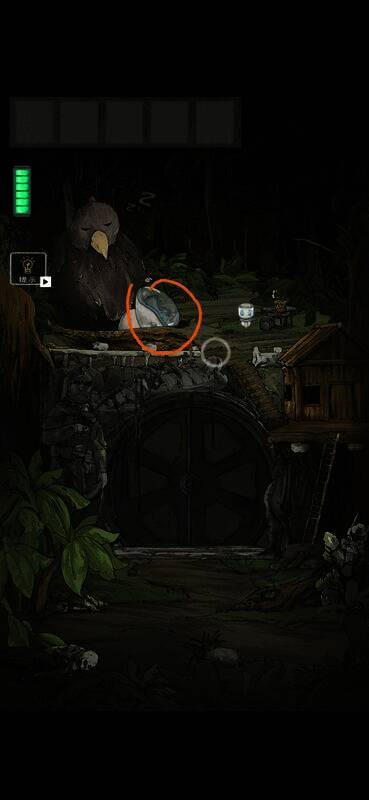 把唱片机和摇杆放在石桌上组合哄睡大鸟,点击飞行舱,输入坐标进入场景三