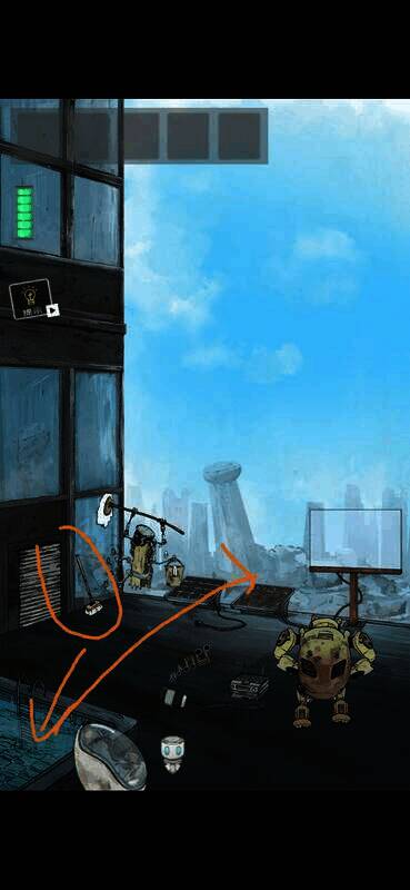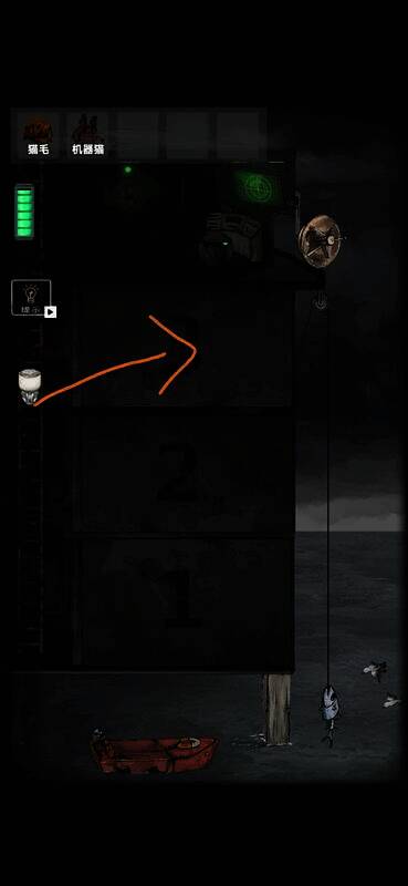 回到一号仓把机器猫交给机器人,来到最上层拿走把手,回到三号仓装上把手打开逃生口进入后来到场景六