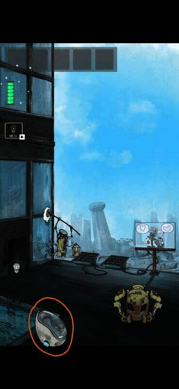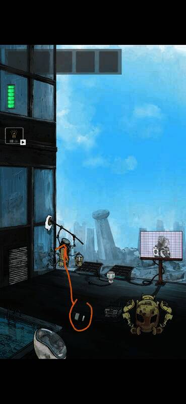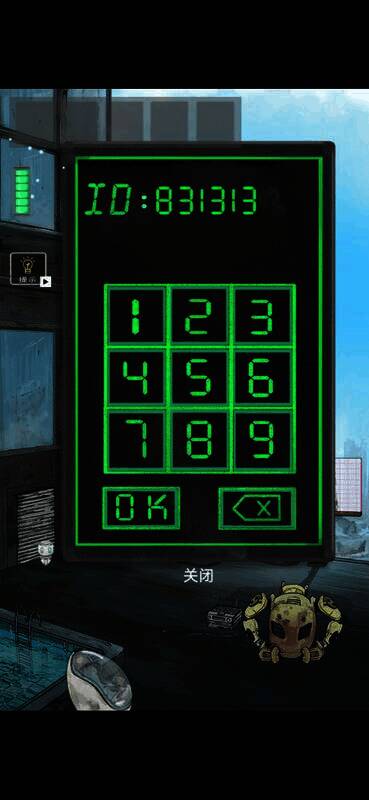 点击拖把,用拖把沾水清洗太阳能板,点击得到喇叭,把喇叭安装在清洁机器人嘴上,根据口哨提示得到门的密码831313,点击大门输入来到场景四