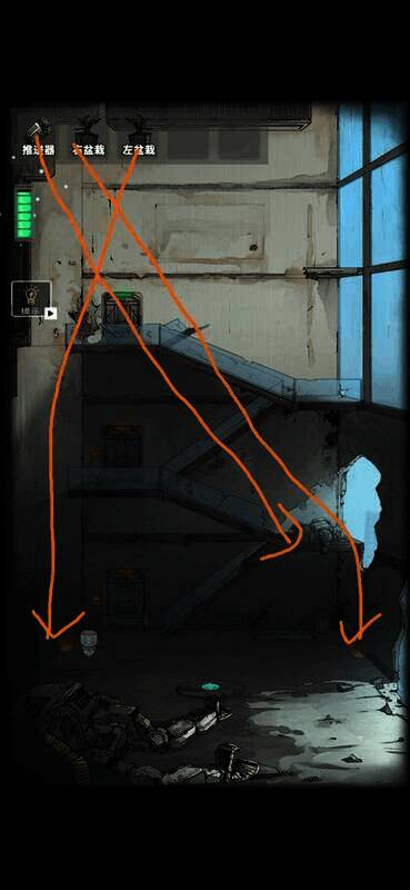 点击三处得到左右盆栽和推进器,把左右盆栽分别放在图中对应处启动控制台,把推进器安装在楼梯机器人背上,进入三楼从衣服上拿到通行证