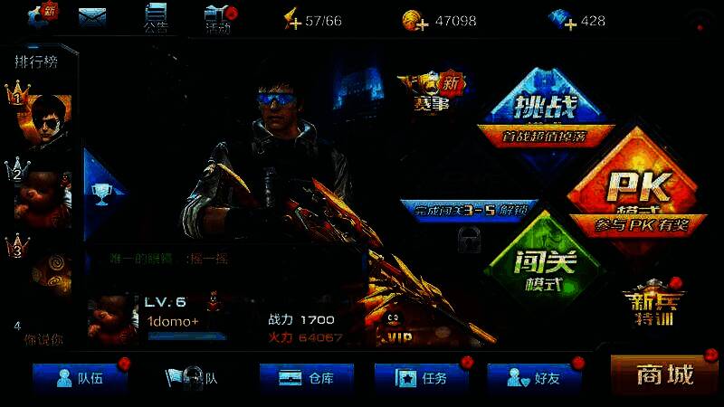 游戏引入了QQ、微信的好友关系链,除了能赠送好友体力、好友助战外,在PVP中还设置了“邀请好友实时1V1对战”以及“邀请好友2V2组队PK”。枪战实时PVP与社交关系链的结合,大大增强了游戏的社交性。此外,游戏还加入了分享炫耀功能,玩家可将获得的枪械、PVP获胜、排行超越等信息分享给QQ&微信好友,以及QQ空间和朋友圈。
