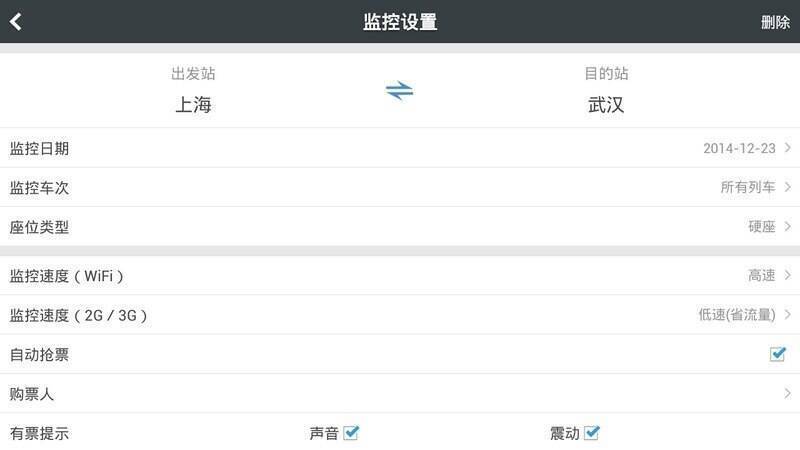 2、【余票监控】自动对余票进行监控,一旦有票会立刻通知你。