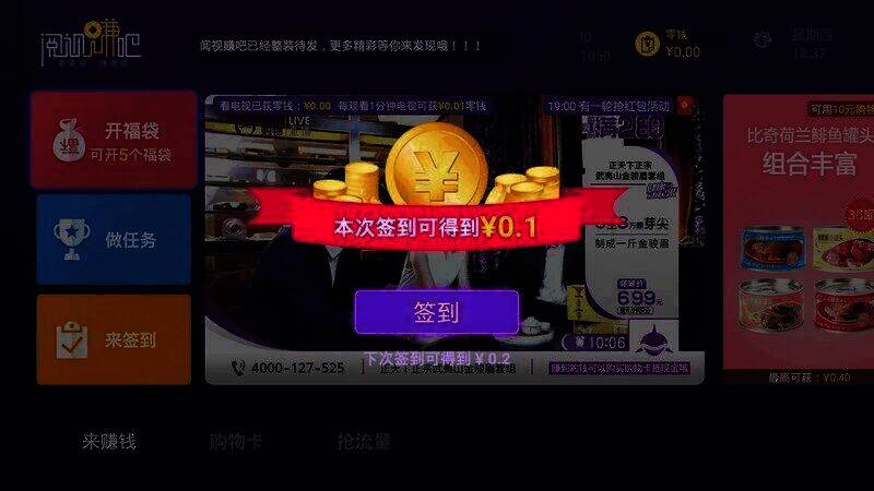 1、看电视可以获得零钱,还能抢红包;