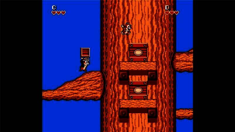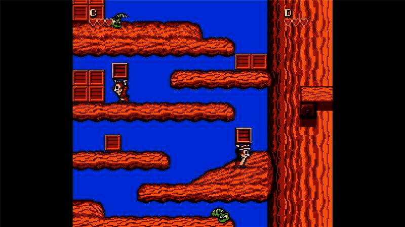 充满童年回忆,游戏支持双人同时游玩。玩家可通过搬运箱子躲避或攻击敌人,游戏以两只可爱小松鼠为主角,要躲避追击并找到松果,是经典的FC平台动作闯关游戏。