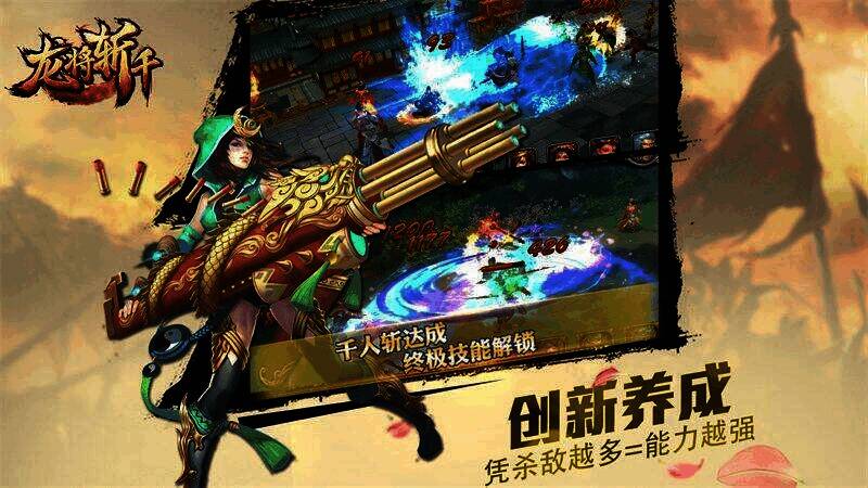 三国鼎立,风云变幻,龙将现世,斩除奸雄。《龙将斩千》是一款具备华丽技能特效的全3D动作卡牌游戏,拥有技能连斩、连携技、无双技、击退打断等玩法。其独创养成系统,杀怪越多能力越强。拿起手机,带上龙将,一同感受“秒杀一切”的畅快游戏体验。