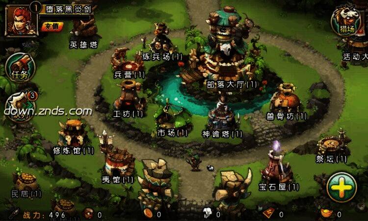 猎场狩猎:充满趣味的狩猎玩法。塔防战斗:传统PVE闯关玩法,超200关PVE战斗等你挑战。试练洞穴:部落历代英灵锻炼后辈勇士之处,虽危机四伏,但勇敢者能觅得奇珍异宝。出征打野:选择电脑敌对势力出征战斗,讨伐野外势力可获金钱和物品奖励。