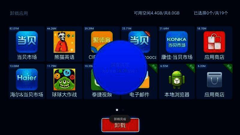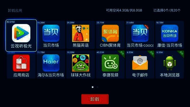 - 批量卸载:对于长期不用的应用,一键即可全部卸载,有效节约电视内存空间。