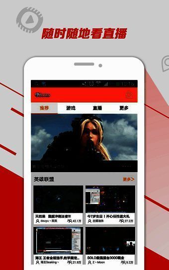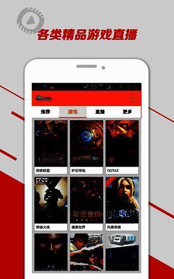 游戏分类:集合LOL、DOTA2、炉石传说等国内外所有热门游戏,每个游戏分类下都有主播进行直播。
