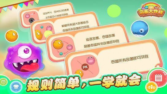 3、【简单快乐游戏玩法】:大萌菌吞噬小萌菌,小萌菌速度快,大萌菌速度慢,玩法简单,轻松上手。