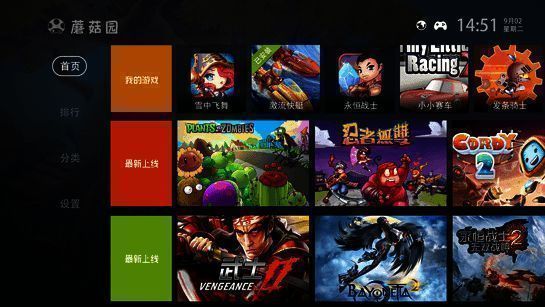 蘑菇园游戏大厅是国内全面且优质的电视游戏平台,为智能电视和智能机顶盒量身定制。现已上架 500 款电视游戏,每款都由评测人员精心挑选,且经过专业适配,能完美支持各种电视和手柄,即插即用。只需一个手柄,就能让电视秒变游戏机。