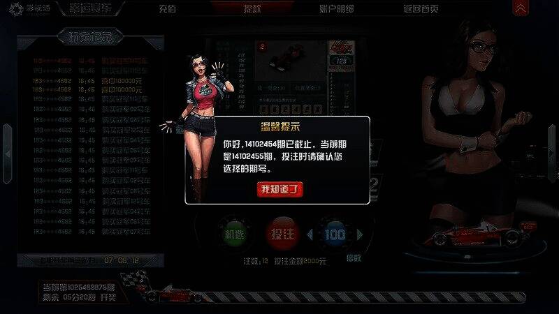 幸运赛车TV豪华版,是一款模拟F1赛车竞速的彩票游戏,和香港赛马有着相似之处。它观赏性佳,可自主竞猜,有多种投注方法,还将彩票游戏与电视宽屏相结合,集娱乐性、趣味性、即时性、运动性、直观性和刺激性于一身。玩法简单,电视大屏展示的开奖过程逼真刺激、扣人心弦。游戏设置12辆虚拟赛车竞速,竞猜冠军,投注还有赛车美女助力中奖。猜中即中奖,返奖率高达59%,每10分钟开奖一次,每天有84次中奖机会。