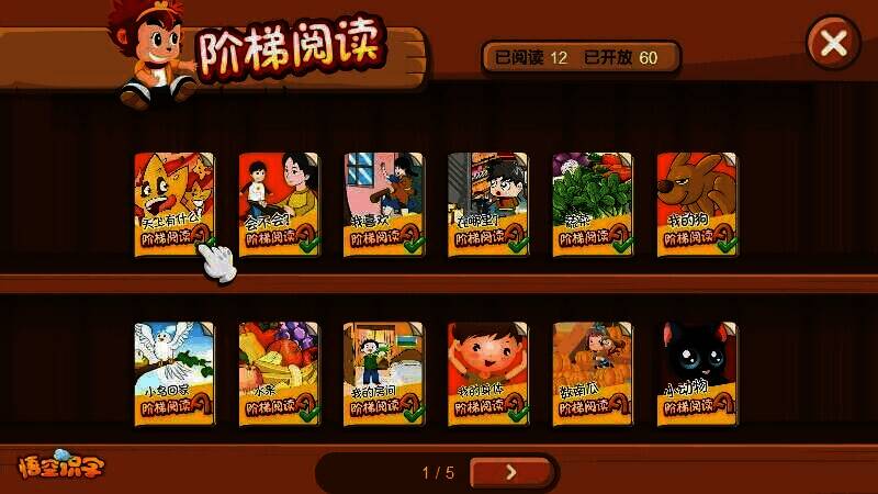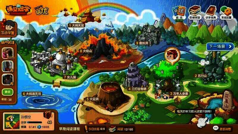 3、以西游记为故事背景,15大场景、120多个识字游戏、1200个识字动画;
