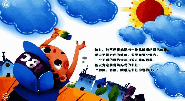 《彩色玻璃的风波 TV版》是一款极具价值的早教启蒙应用,它围绕彩虹形成的故事展开。小主人公贝贝没见过彩虹,却爱听相关故事。一天,他在广场捡到破损彩色玻璃,透过玻璃球望天竟看到彩虹世界,引得大家纷纷抬头,后续故事令人期待。该软件能培养孩子动脑能力,值得为孩子们准备。