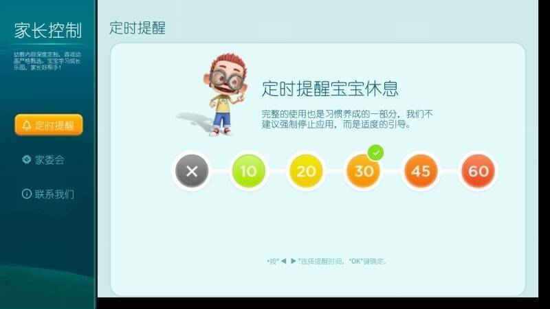 家长控制:定时提醒宝宝休息,控制娱乐时长。