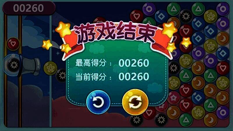 对于广告我们深感歉意,若你不想看到广告,在出现 10 多次广告后即可直接关闭当天的广告,这一点还是很人性化的。游戏关卡失败会扣 1 心,共有 5 心,半小时恢复 1 心,点击广告可直接恢复,推测不会存在暗坑(具体待通关后确认)。游戏没有标准泡泡龙的限制线规则,无需担心时间限制,也不用精确计算,可随心所欲游玩(不确定后续关卡是否会故意增加难度)。游戏有步数限制,画面也较为精美。