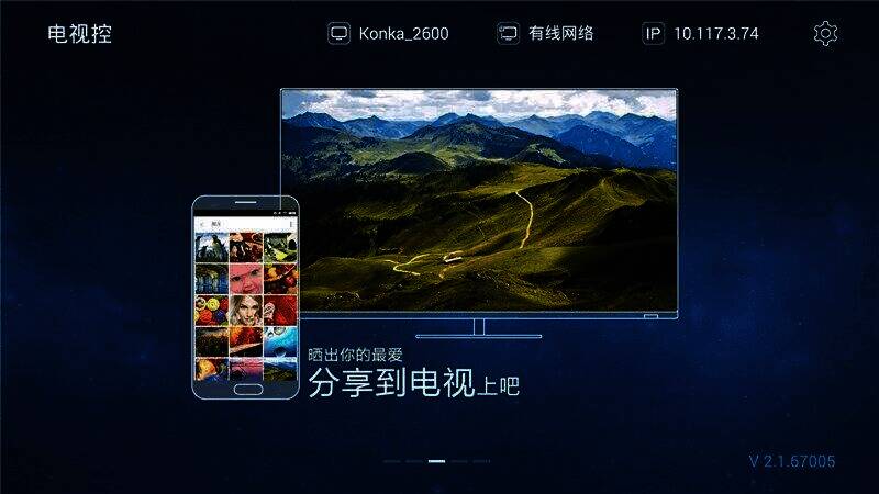 - 手机分享:把手机里的照片、音乐、视频推送到电视,大屏观赏更惬意。