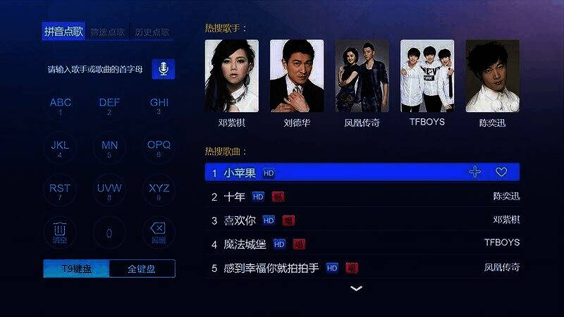 1、操作简单的电视点歌软件,即点即播,全部免费。
