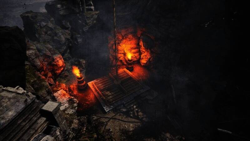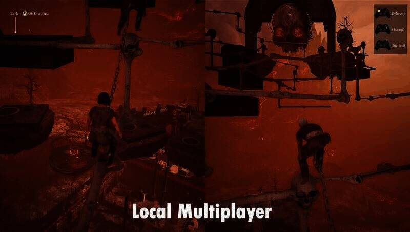 游戏中,玩家要通过铁链与同伴锁在一起,携手登高以逃离地狱场景。攀登途中,需应对各式各样的障碍、机关以及复杂地形。