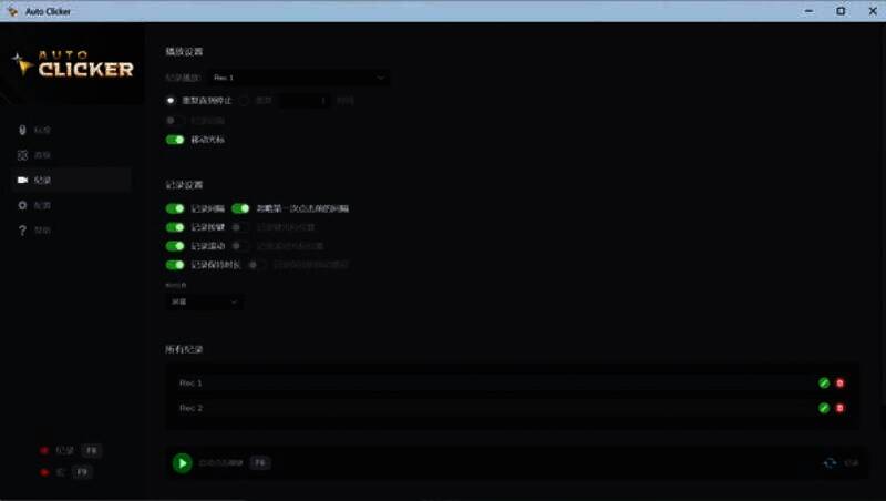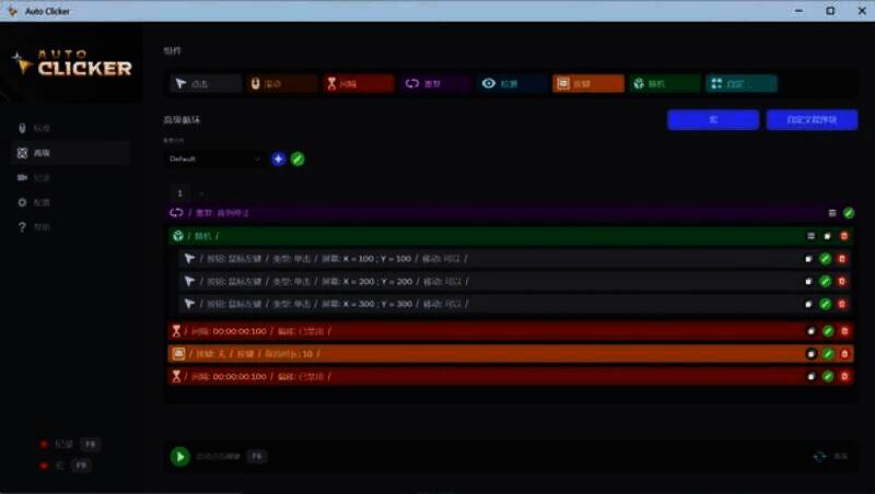 1、纪录功能:可记录所有点击、按键和延迟,之后重放或将其导入自定义操作,用于高级操作流程。