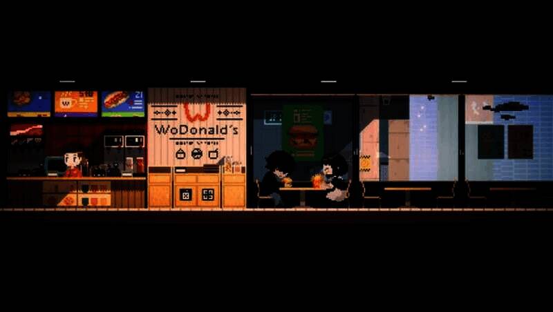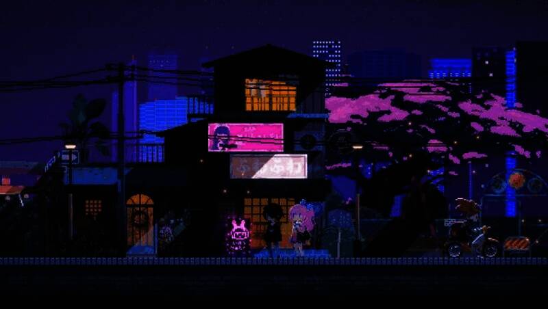 游戏采用现代风像素绘,尽管是像素风格,但动态像素点阵图的视觉呈现效果十分出色。无论是人物衣服的纹理、店内的小摆件,还是大街上的各类建筑物,包括建筑霓虹灯光的闪烁效果和渐变色呈现,整体的光照效果和阴影效果都达到了较高的水准。丰富且精美的像素美术资产,如大量的收集品插画、丰富的店铺商品、剧情演出中插入的插图等,为玩家带来了绝佳的视觉享受。