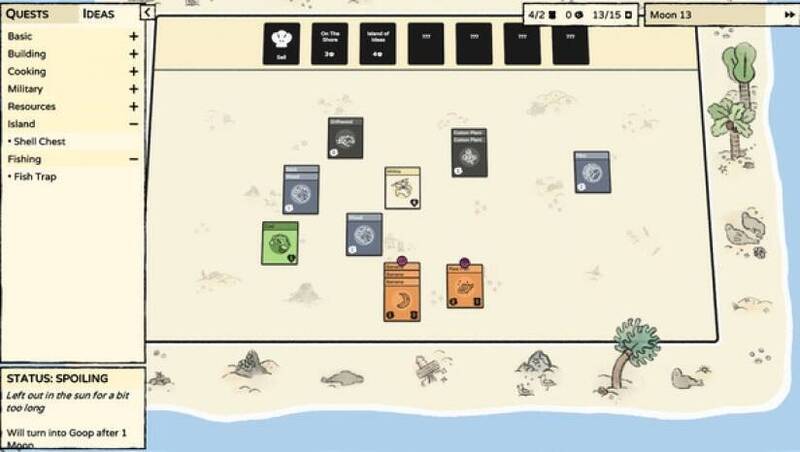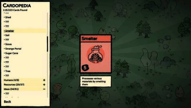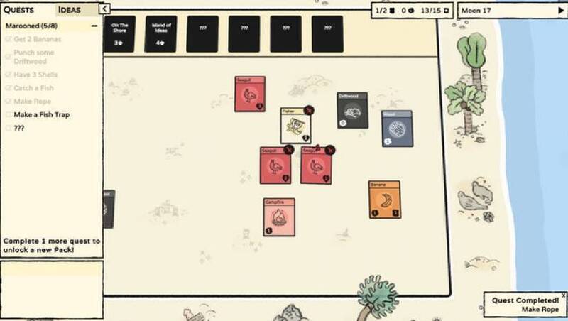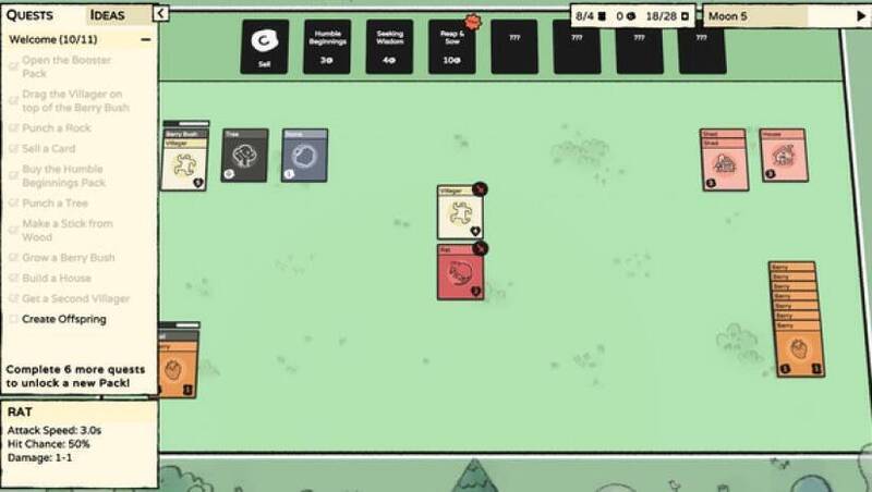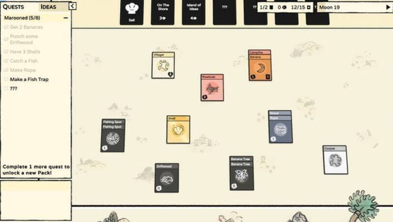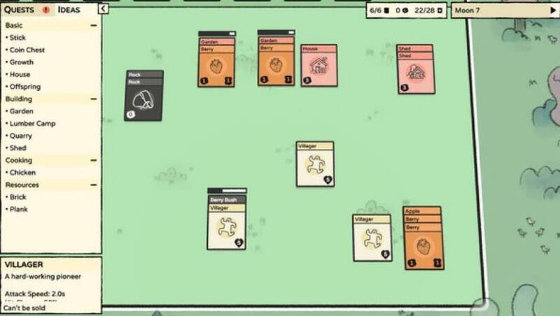 游戏里所有元素皆以卡牌呈现,玩家把不同卡牌堆叠组合,可产生新卡牌或触发操作。例如将“村民”卡拖到“树木”卡上,能获取“木材”和“树枝”;把特定数量的“木材”“石头”与“村民”组合,可建造“房屋”等建筑。