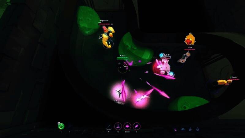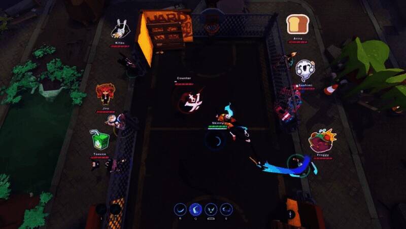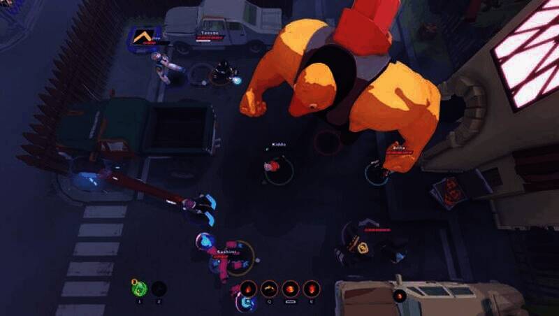 玩家可以从11名风格独特、造型夸张的角色(如机甲金鱼、武士等)中挑选一个,利用角色的独特技能(如召唤坦克、变身炮台等)以及随机掉落的强化道具来制定战术。游戏采用俯视角操作,玩家通过WASD键移动,使用快捷键释放技能。战场中有可破坏的掩体和各种动态事件(如毒圈缩小、BOSS突袭),这就需要团队成员相互协作,一起搜集资源并击败敌人。