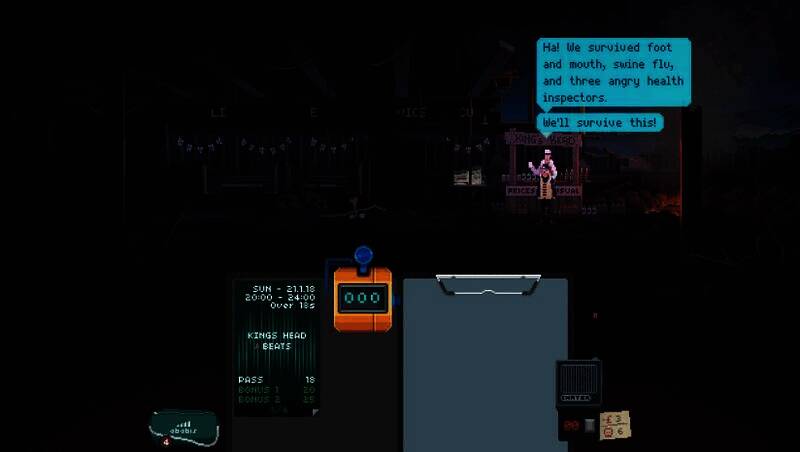 《今晚没开》是由PanicBarn精心开发、No More Robots发行的一款别具一格的游戏,于2018年7月正式登陆Steam平台。游戏构建了一个独特的架空世界,在此设定中,英国脱欧以失败收场,极右翼政府顺势掌权,排欧政策肆意横行。玩家所操控的主角,原本拥有英国国籍,却因政策突变,一夜之间沦为“欧裔”,陷入了极为艰难的境地。为了生存,主角只能借助手机应用BouncR去寻找工作,工作地点大多是酒馆、夜店这类复杂的场所。在工作期间,玩家需要仔细检查来宾的身份证,认真比对嘉宾名单,甚至要和VIP对暗号。此外,玩家还能通过接受贿赂等违规手段获利,但过度滥用权力将会引发严重的后果。这款游戏巧妙地将时间管理与RPG玩法相融合,以经典的像素画风呈现,带领玩家在充满政治隐喻的荒诞世界中努力求生。