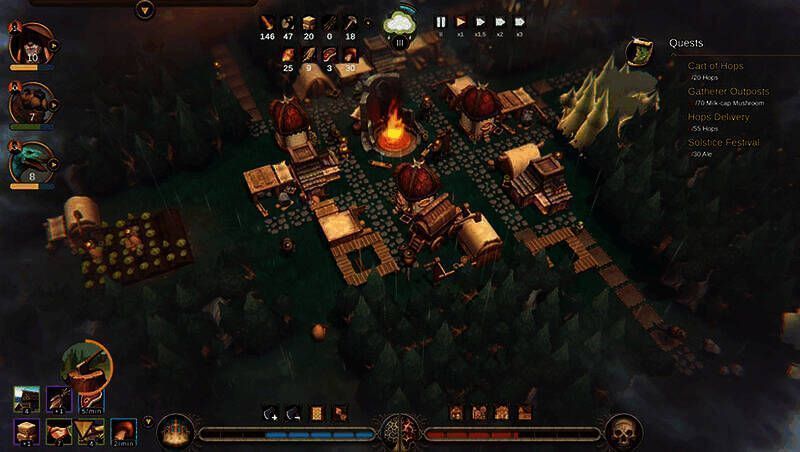 雨水既是玩家的盟友,也是最大敌人。它在三个季节中循环,要求玩家灵活应对不断变化的条件。毛毛雨的再生季节,自然资源会自我补充,是种植农作物的好时机。清理季是收获、扩张和为最严酷季节做准备的时期。风暴来袭时,便是对城市实力的真正考验。