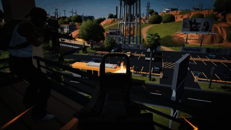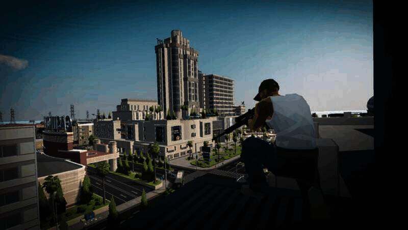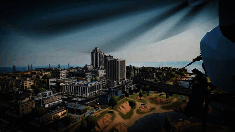地图包含主城区、郊区、高速公路、山地与河流等多样地形,还有大量可供进入的建筑物。
