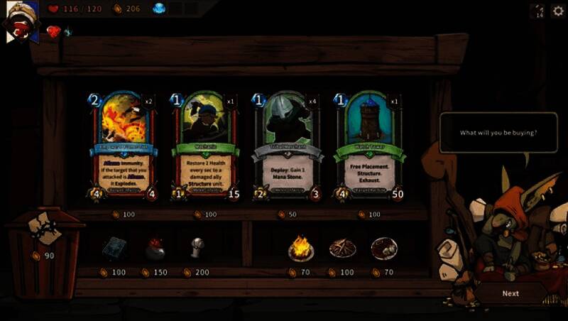 2、卡牌构筑:要在这个独特世界中前行,您需通过各种经历来壮大牌组。战斗胜利后,您会获得可在商店和事件中使用的金币、紧急时刻提供力量的食物以及卡牌奖励。与哥布林商人交易,为指挥官收集最佳协同卡牌,为下一场战斗做好准备。在游戏进程中,您或许会遭遇有趣事件,如遇到保护鼠群的环保组织或推销储蓄计划的哥布林销售员,选择最有利的选项,但要留意可能出现的意外状况。