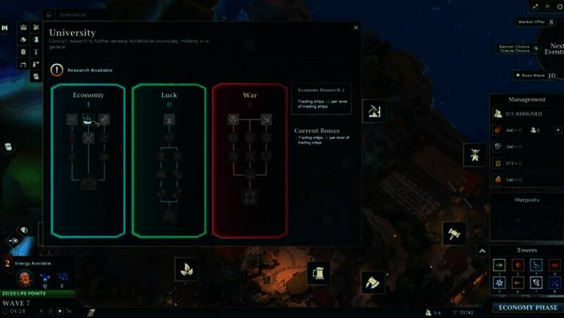 玩家需合理分配木材、金币等资源,建造20余种功能性建筑,像伐木场可提升资源产出,工坊能降低塔楼造价,同时升级住房以扩大人口上限。每回合可自由调配工人至生产岗位,为防御工事奠定物质基础。