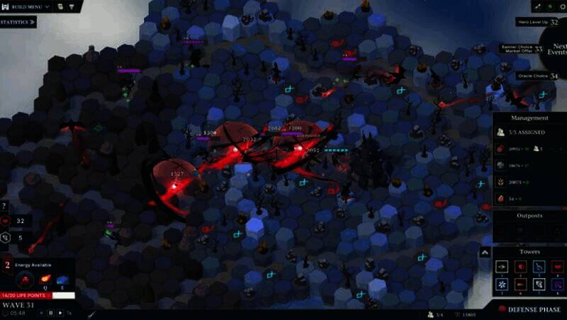 操作界面简洁直观,实时显示资源、人口与敌人波次。点击建筑可查看详细信息,长按英雄可预览技能范围,确保策略决策高效完成。