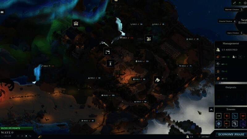 每次战役随机生成地形与事件,如突袭的狼群、限时资源宝箱等。“旗帜选择”系统提供阶段性增益,如攻速提升或资源获取加速。永久死亡机制促使玩家不断优化策略,适应随机化的战场环境。