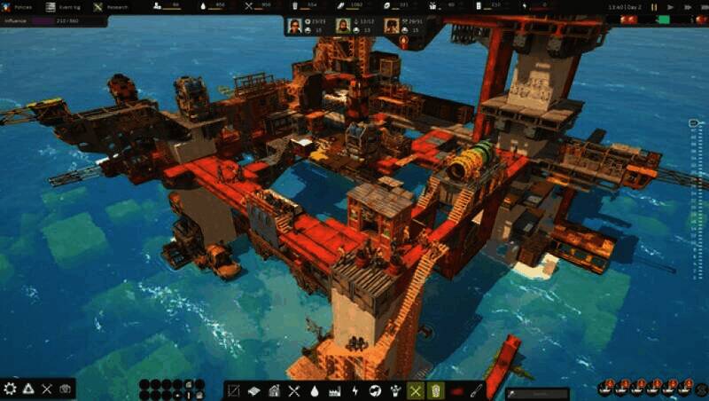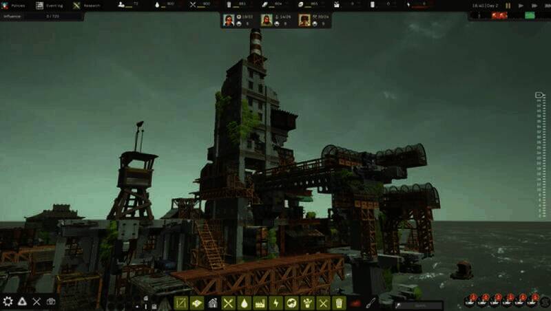 借助基于物理的独特3D建造系统,在水上打造宏大的垂直城市。建造多层结构时,要充分考虑建筑原理,合理使用建筑材料,为建筑提供足够支撑。例如搭建桥梁,要精确计算桥墩位置和承载能力,否则可能在风暴中倒塌。玩家可以发挥创意,设计各种独特建筑,如堆叠住房节省空间,建造梯子、桥梁方便居民通行。