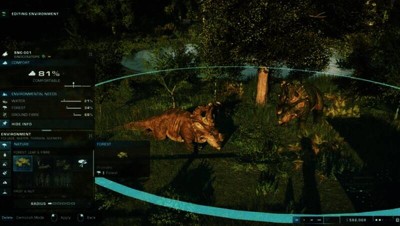 玩家可以自由选择建造侏罗纪公园或者侏罗纪世界,精心规划园区布局,建造各类设施,像控制中心、员工中心、恐龙中心、史前医疗设施等。还要合理安排发电站的位置,保障公园供电稳定,通过便利店获取收益,并雇佣科学家进行研究和恐龙管理工作。