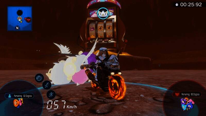 《爆走次元海王星VS巨神史莱犬》是由Compile Heart开发、Idea Factory International发行的一款动作冒险游戏。游戏的舞台设定在被史莱犬淹没的异次元空间,玩家操控天王星涡芽驾驶机车,通过高速漂移、跳跃以及与机关互动来收集史莱犬,同时还要和四女神展开资源争夺战。其核心玩法将竞速与战斗相融合,玩家要灵活运用冲刺、撞击和技能去抢夺对手收集的史莱犬,以完成关卡目标。此外,游戏支持机车部件改造,可通过升级引擎、轮胎和武器来提升性能,搭配3D动态场景与史莱犬的萌系设计,带来紧张刺激又趣味十足的跨次元狂飙体验。