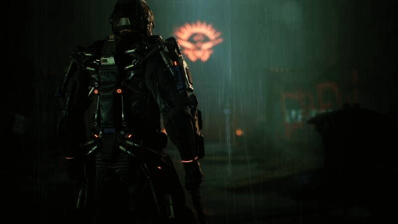 游戏以第一人称视角为核心,玩家可通过定制化外骨骼系统实现超人类战斗能力,例如利用电磁脉冲瘫痪敌方设备,或通过环境扫描定位敌人位置。外骨骼还赋予玩家高速移动、重型武器携带等战术优势。