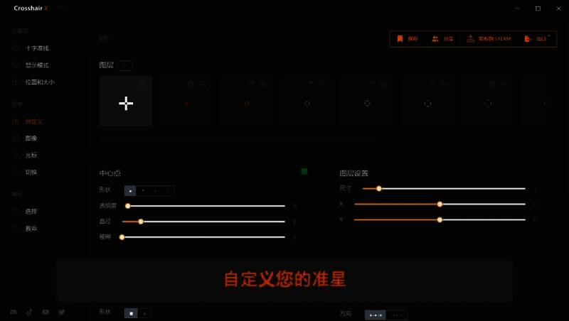 玩家利用简单易用的滑块,能轻松调整准星线条、中心点、轮廓等特征,涵盖透明度、长度、宽度等,还能上传任意图片作准星。