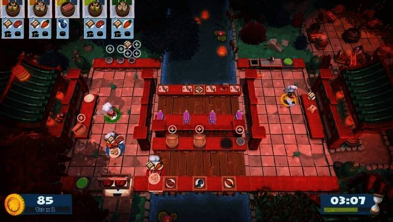 玩家需进行切菜、烹饪、装盘、上菜、洗碗等一系列操作。按照菜单顺序上菜能获得更多小费。同时,还可通过投掷机制将材料扔给队友或锅、地板。