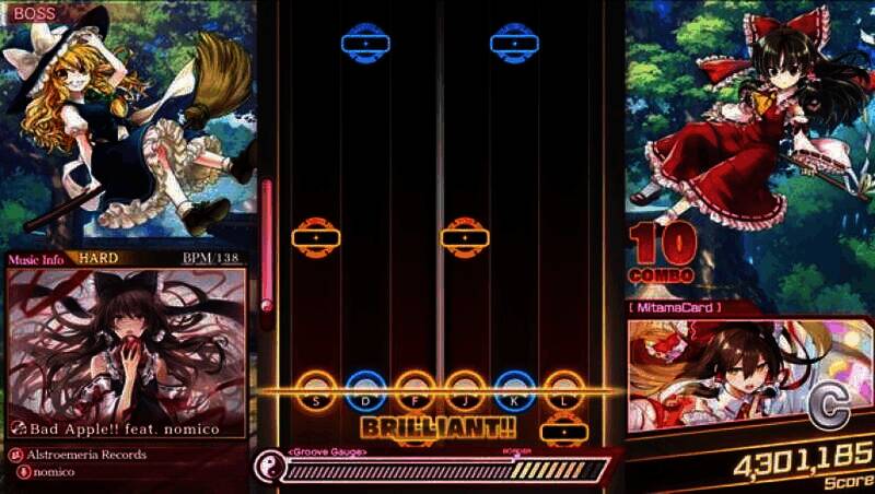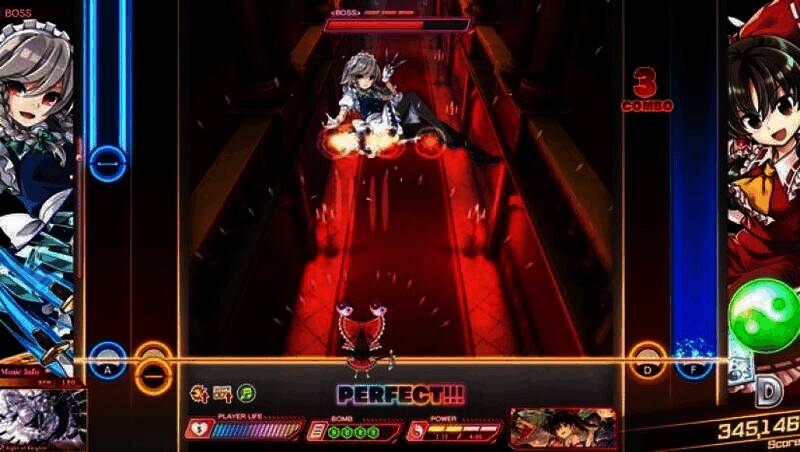 游戏有两种音乐游戏体验,将手机版《弹幕神乐》的体验进一步升级。“神乐环节”是随节奏敲击按键的音乐游戏,踩准节奏连续击中6个轨道全部按键可达成连击获更多分数,有最多4种难度、超160首(含收费DLC曲目)东方改编曲目可玩。