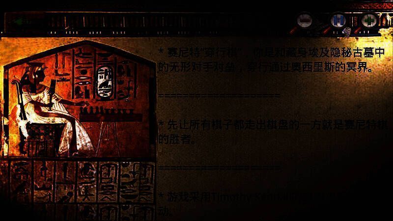 这款游戏结合运气与策略,极具挑战性。它配有逼真的古埃及神庙照片、精美的古老石棋盘及棋子图形动画,场景设定在余音缭绕的墓室中。宗教音乐和石块移动音效,完美再现埃及前王朝氛围。棋类游戏存在数千年,而约3500到5000年前埃及人发明的古赛尼特棋最为古老。起初它是皇室和平民的娱乐方式,到公元前13世纪中叶发展成宗教仪式。棋盘象征来世,棋子移动如灵魂走过阴间,目标是到达最后空格离开棋盘,如同埃及人死后到达荷鲁斯离开阴间。