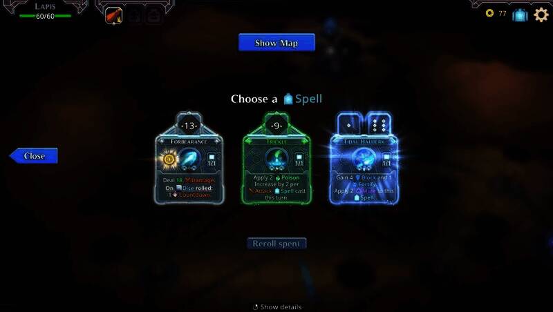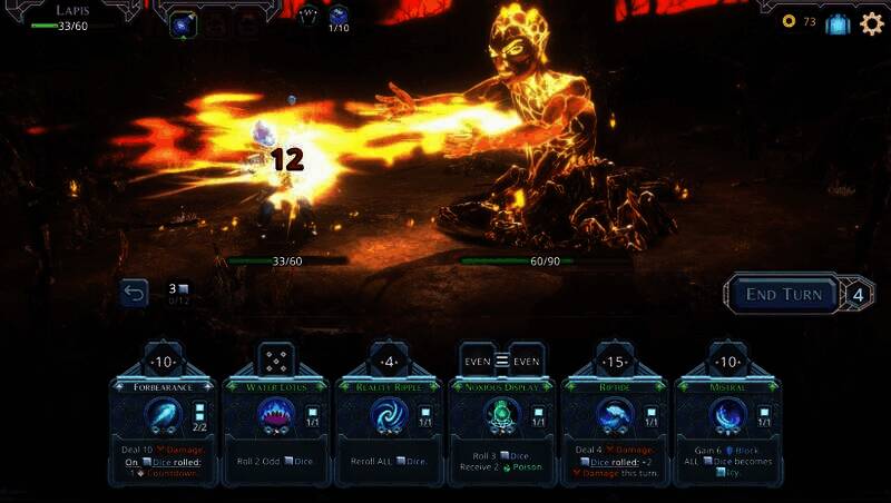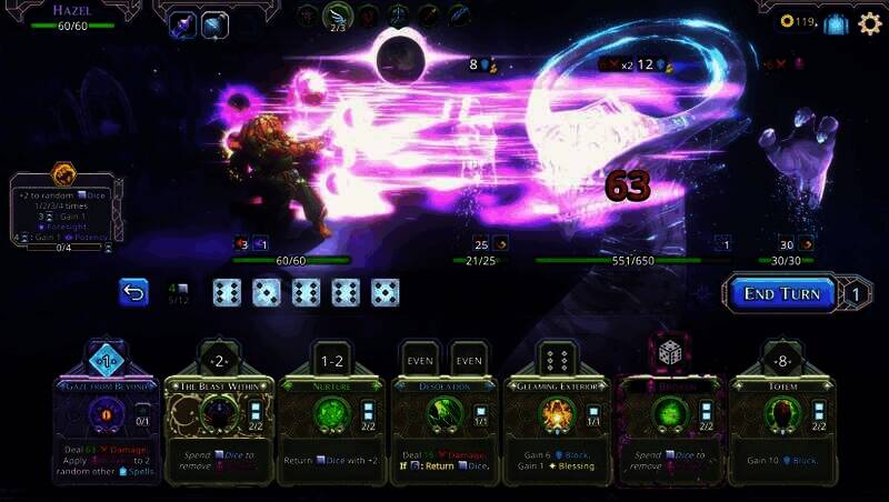 玩家通过投掷骰子激活法术效果,骰面点数直接影响技能强度与触发概率,如“大漩涡”与“愚人希望符”组合可造成连锁伤害。